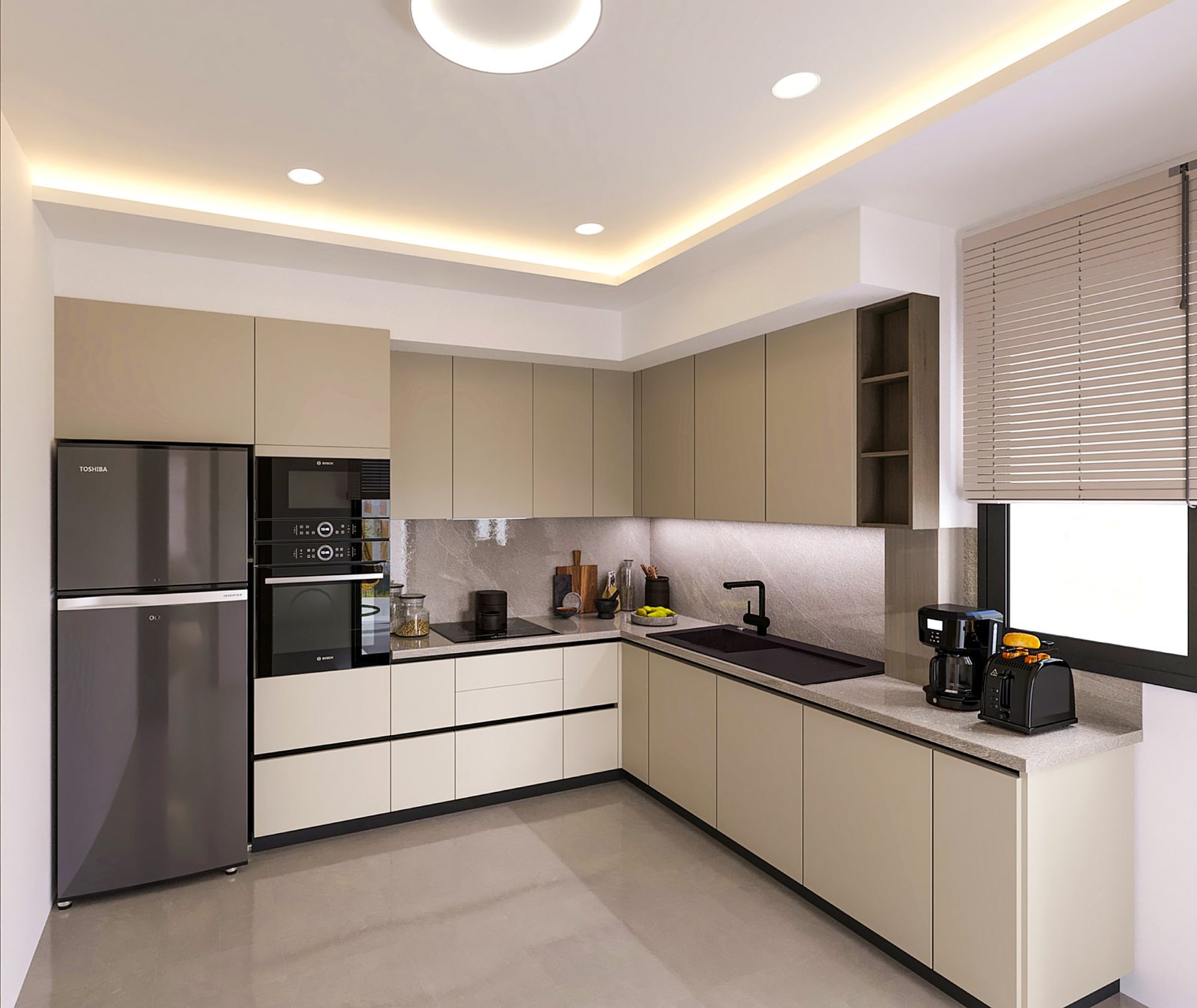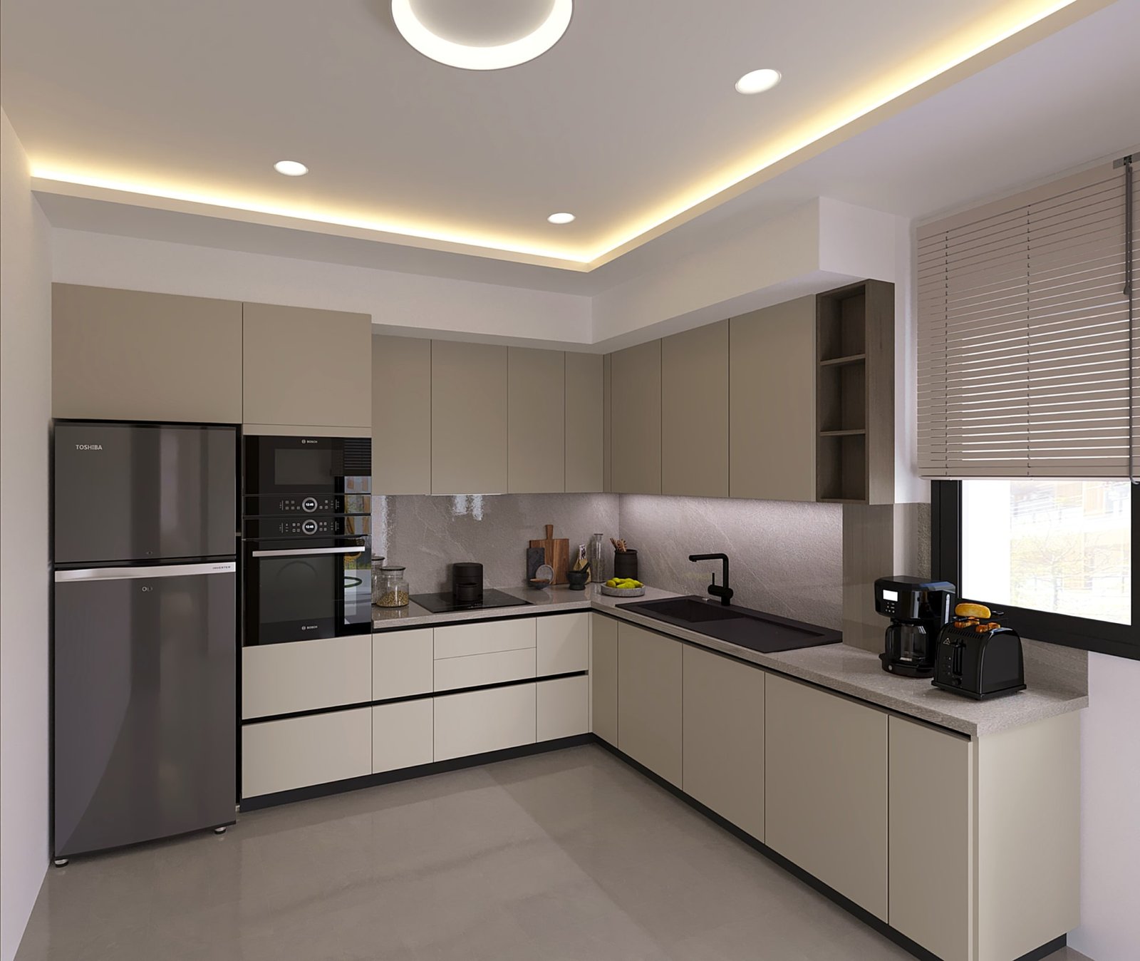 - Une cuisine équipée moderne